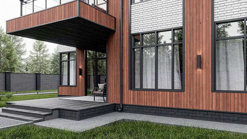 Фасад испытывает повышенные нагрузки от воздействия влаги, а в цокольной части помимо влаги испытанием на прочность становится постоянный контакт с грунтом. По этой причине материалы для отделки фасада и цоколя должны обладать высокой прочностью, стойкостью к влажным и агрессивным средам.