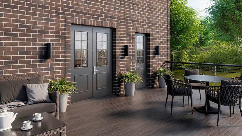Отделка панелями повторяет кирпичную или каменную кладку. Материал широко применяется в малоэтажном строительстве. Его востребованность обусловлена эксплуатационными свойствами, в том числе устойчивостью к сезонному колебанию температур, ударопрочности и технологичности монтажа. Размер фасадной панели 1 метр на 0,42 м. Монтируется новинка по технологии вентилируемого фасада – на обрешетку.