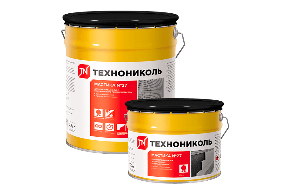 Используют мастику для приклеивания плит пенополистирола (XPS) к битумным, битумно-полимерным строительным материалам. Клеящей мастикой ТЕХНОНИКОЛЬ №27 крепят пенополистирол к бетонным и металлическим поверхностям в системах изоляции фундаментов перед обратной отсыпкой грунта.