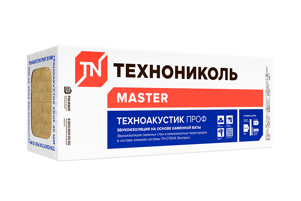ТЕХНОАКУСТИК ПРОФ - негорючие плиты из каменной ваты для звукоизоляционного слоя в системах изоляции помещений.
